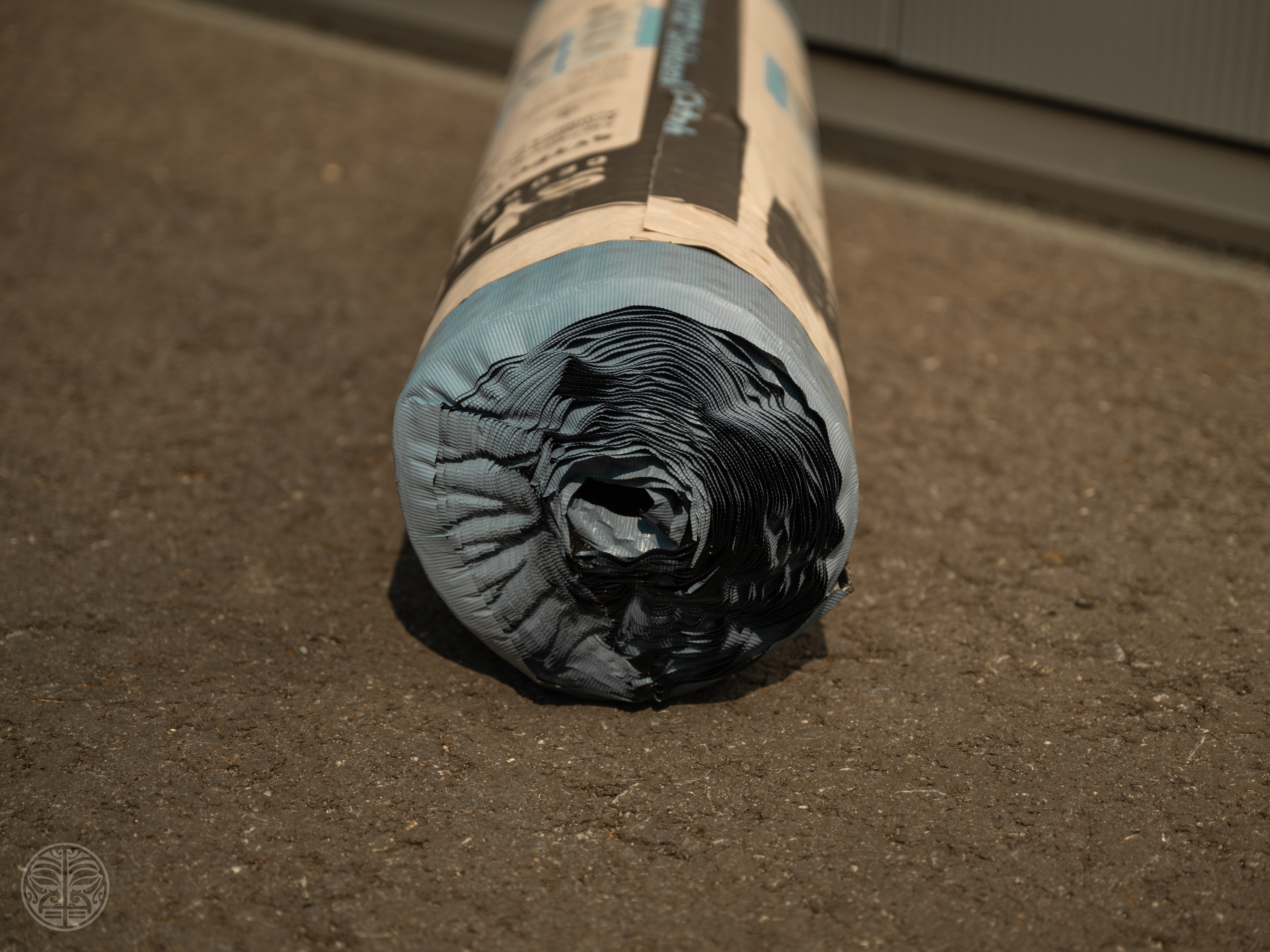 1. Ausrollen durch Abziehen der Schutzfolie / 2. Anwalzen mit Pneuradwalze / 3. Einbau von mindestens 4 cm Belagsdicke.